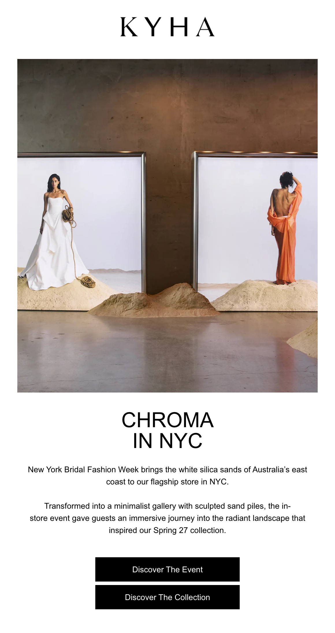 Throughout March 2026, I collaborated with KYHA Studios on the marketing communications for the Chroma Spring ‘27 Collection. The communications included social media captions, emails, and product descriptions, as well as the collection description, press release, and in-store event description. The goal was to bring the collection to life, while adding an element of playfulness to the copy without veering off-brand. The result is a body of work that boosts brand credibility, brand awareness, retail bookings, and sales.